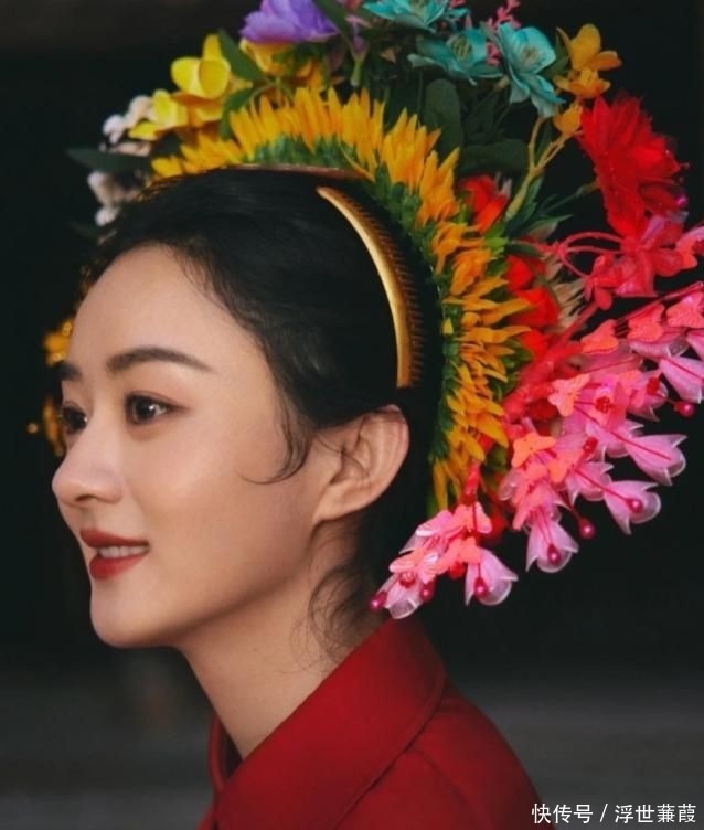 叶一茜身着青碧色新中式斜襟长裙,立领盘扣勾勒端庄气度,裙摆垂坠如水,尽显成熟女性的沉静力量;发髻之上,层层叠叠的朱砂红簪花错落铺展,映得她肤若凝脂、神采奕奕。